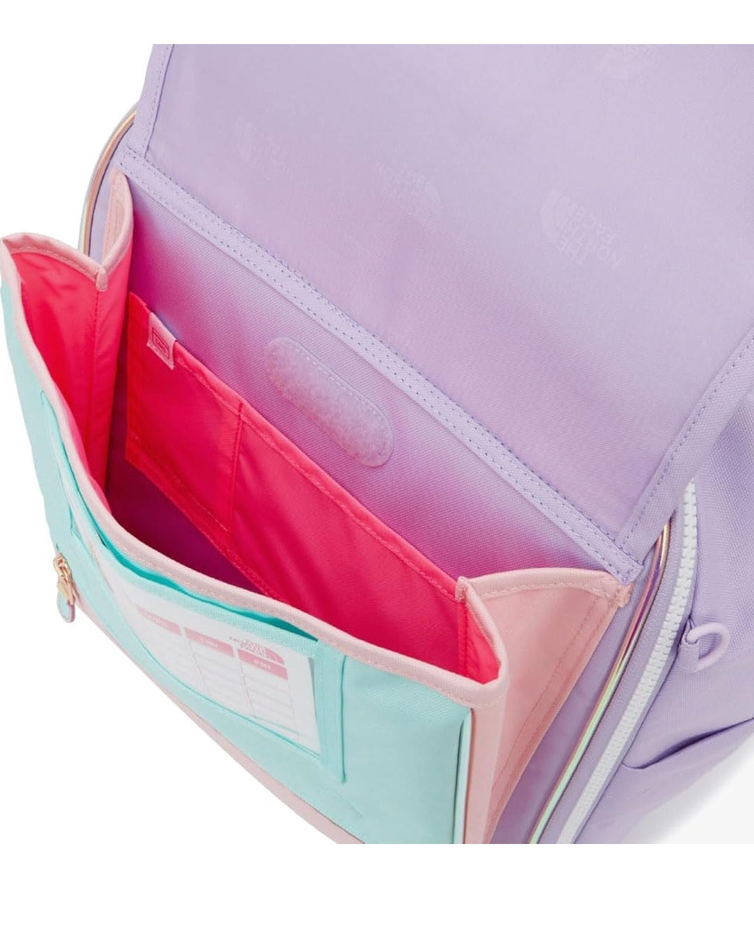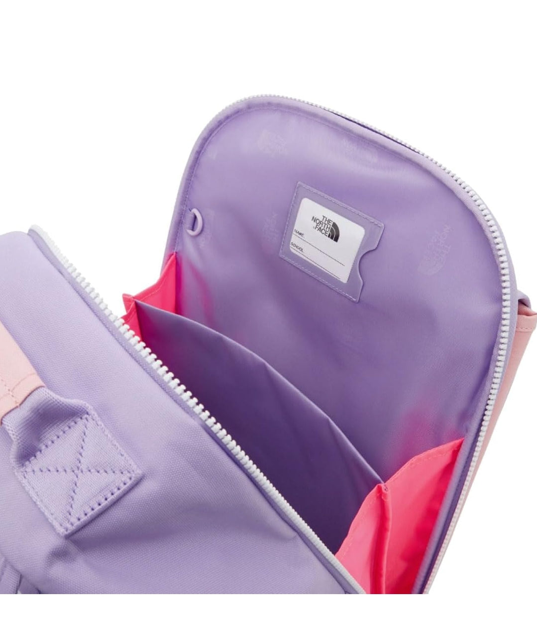The North Face Kids Backpack is made of solid lilac, soft shell nylon exterior. Preppy design makes it perfect for elementary school school. Padded straps and drawcord closure; reduces stress on the knees and back for a comfortable wear.